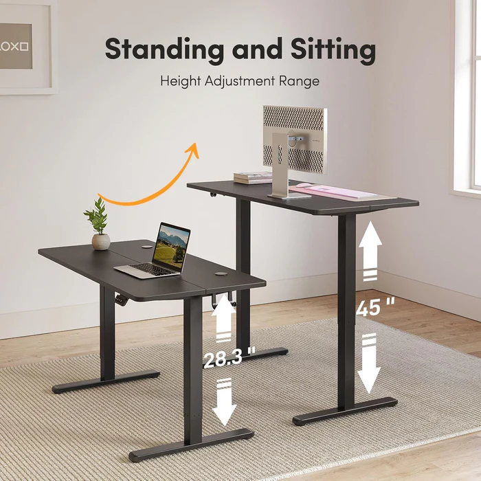 - Effortlessly adjust the desk height from 28.3″ to 46.5″ at a speed of 1″/second, with noise levels under 50 dB for a silent transition. Equipped with three customizable memory presets, the desk allows users to switch between preferred heights with a single press, enhancing comfort and productivity.